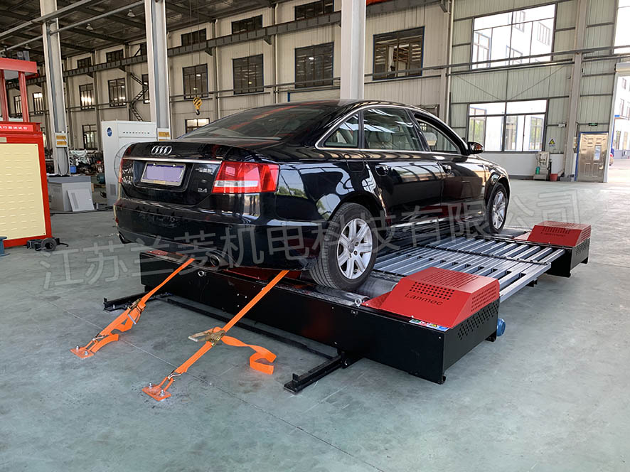 汽車的底盤測試平臺主要用來測試汽車發(fā)動機帶動4個輪子所輸出的扭矩,輸出的功率。也就是我們平常所說的汽車屁股上所標(biāo)的2.0G2.5G1.8T等等。 圖中我們這里所看到的是奧迪轎車,他是倒車上底盤測試臺,底盤測試臺相對而言高度比較低,左右的寬度和前后的軸距,是專門為轎車設(shè)計的。 |
