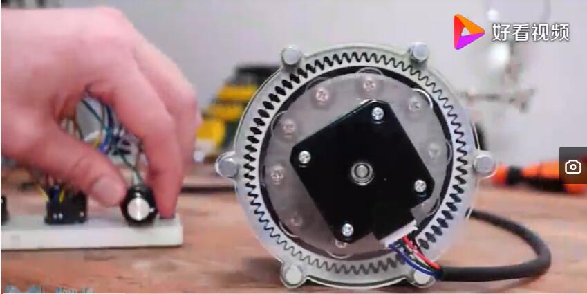 今天有牛人把一個很小的諧波減速器,直徑只有5公分的諧波減速器拿來做試驗(yàn)。是日本人制造的諧波減速機(jī),那我們先把它安裝到一塊鐵板上面。