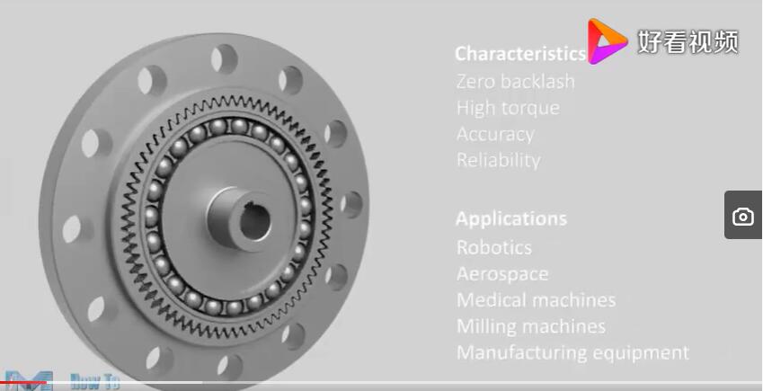那我們總結(jié)一下諧波減速機(jī)它的缺點(diǎn)就是成本高,耐沖擊能力比較弱。當(dāng)然現(xiàn)在工業(yè)比較發(fā)達(dá)、航空制造、流水線上用到機(jī)器人,用到諧波減速機(jī)的地方比較多。目前國際的品牌和國內(nèi)的品牌也不少。那么我們看一看他們是通過什么原理來實(shí)施減速的這個效果的,通過這個視頻我們就可以看到,外部的主動輪帶動中間的柔輪做旋轉(zhuǎn)運(yùn)動,這個主動輪直接插入中間帶動柔輪,我們可以看到這個柔輪是變形的,主動輪帶動柔輪一起旋轉(zhuǎn),因?yàn)槿彷喿冃嗡c周圍的鋼圈形成了嚙合。由于這個中間的主動輪的旋轉(zhuǎn),它會進(jìn)一步達(dá)到一個減速效果。隨著主動輪速度的增加,后面的柔輪轉(zhuǎn)速不是太快。它的減速比可以從70~500?梢赃_(dá)到一個非常大的減速比。他用的最多的就是用在機(jī)器人的旋轉(zhuǎn),機(jī)器人的胳膊關(guān)節(jié)上。還可以插取一些比較脆弱的東西,比如說玻璃屏幕替代,它的本身精度非常高,配合伺服電機(jī)使用。伺服電機(jī)的成本也非常高。一般是用在機(jī)器人的關(guān)節(jié)上,我們這次太空倉里面的機(jī)械臂就用上了我們國產(chǎn)的諧波減速機(jī),非常精度的把航天員湯宏波、劉伯明送上外太空進(jìn)行倉外作業(yè),由在倉內(nèi)的航天員來操作機(jī)械臂,要求精度非常高,還要適度外太空惡劣的無空氣環(huán)境,大量的宇宙的射線,對我們國防工業(yè)也是一個挑戰(zhàn)。