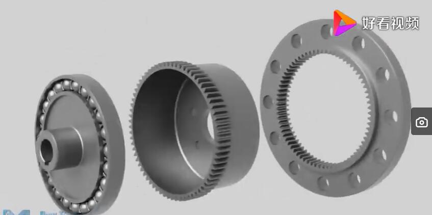 那么我們首先來看一下諧波減速機(jī)有哪幾部分組成,我們來看這張圖片。是一個諧波減速機(jī)的實(shí)物圖,是由三個部分組成,前面這個像軸承一樣的叫做主動輪,中間的這個叫柔輪,旁邊的這個鋼圈和鋼輪,它主要就是由這三個部分組成。