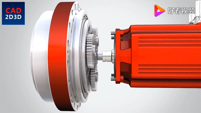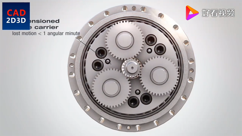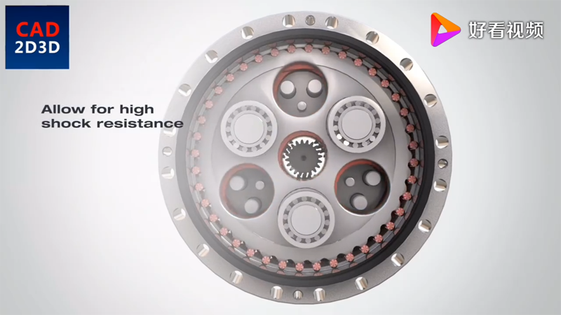 3個(gè)行星齒輪,同輸入齒輪驅(qū)動(dòng),行星齒輪帶動(dòng)曲柄軸旋轉(zhuǎn),曲柄帶動(dòng)RV齒輪朝相反方向旋轉(zhuǎn)。