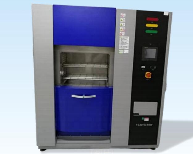三廂溫度沖擊試驗箱采用立式箱體、冷熱箱及樣品區(qū)三廂結構,采用閥門動作變換樣品區(qū)溫度的辦法達到冷熱沖擊試驗的目的。這種結構最大地提高了樣品在試驗時不移動,可接外源,也是最可靠、節(jié)能的一種冷熱沖擊的方式。
